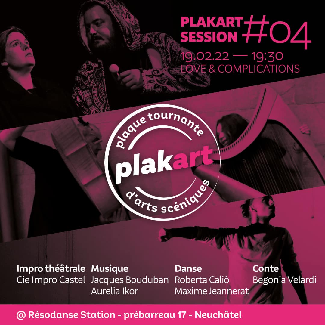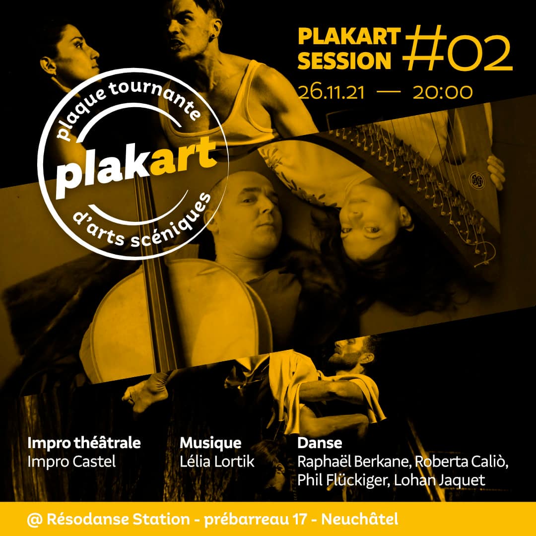 FONDÉE EN SEPTEMBRE 2020, BASÉE À NEUCHÂTEL, L’ASSOCIATION PLAKART EST ENGAGÉE DANS LA PROMOTION DES ARTS SCÉNIQUES EN PORTANT DES PROJETS DE CRÉATION, EN METTANT EN COLLABORATION DES ARTISTES DE DIFFÉRENTES DISCIPLINES ET EN ASSURANT LEUR RENCONTRE AVEC LES DIVERS PUBLICS.