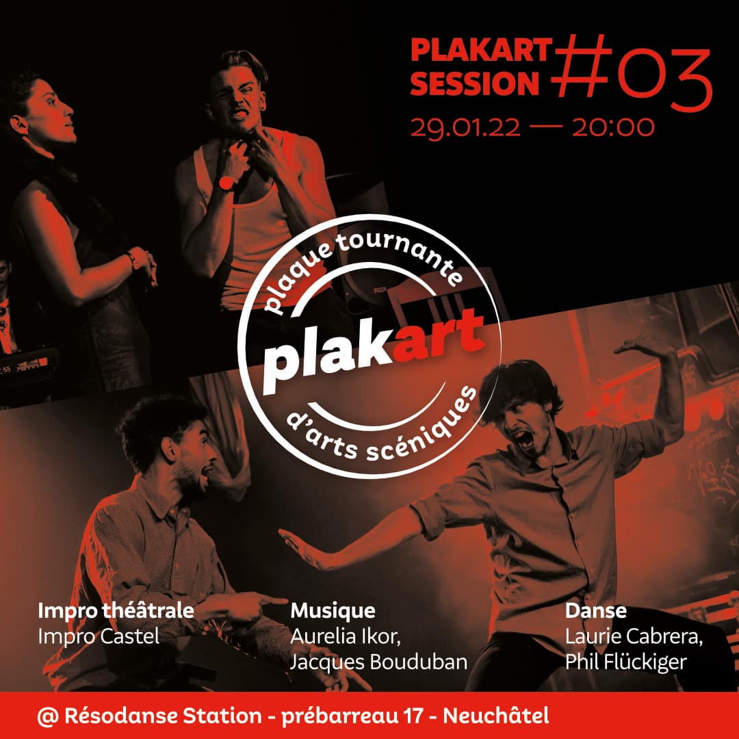 Depuis octobre 2021 , l’association PLAKART produit régulièrement des spectacles d’improvisation pluridisciplinaire, présentés dans les espaces artistiques de Résodanse Station.